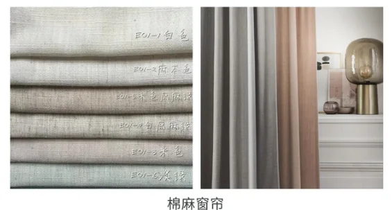 ①棉麻窗簾:柔軟舒適,但容易起皺、變形。遮光性偏差。和滌綸混紡后,棉麻窗簾就會變得挺括、遮光。