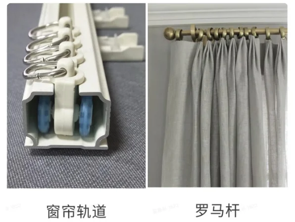 ③窗軌包括羅馬桿、直軌、彎軌等,質量決定窗簾開合順暢度。