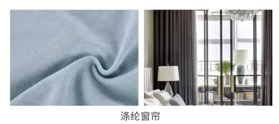 ②滌綸窗簾:挺括、耐用、抗皺、垂墜、遮光性好。