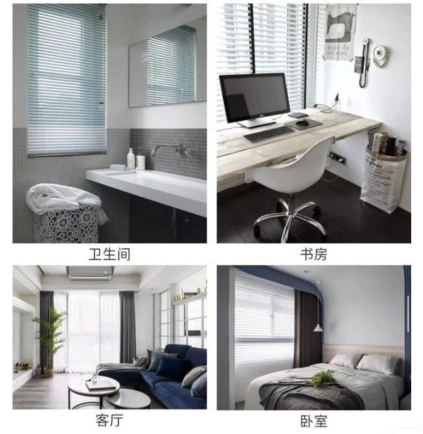 ①衛(wèi)生間、廚房可選百葉簾,擦洗方便,防水性好。
