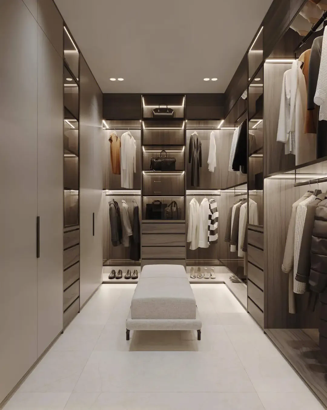 3.利用單獨(dú)一個(gè)空間或房間做U型衣帽間。