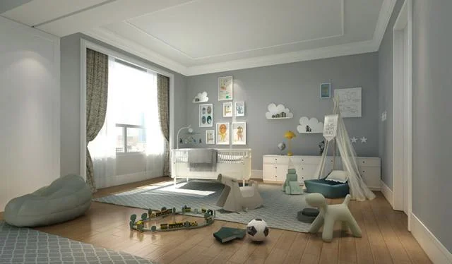 1.兒童房的配色以低保和度彩色系為空間主色調(diào),如藕粉、霧霾藍等。